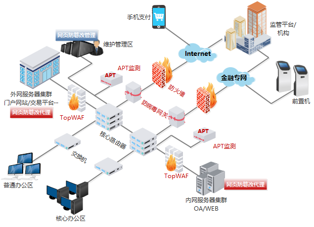 随着互联网支付发展,很多企业及个人都已经习惯于通过互联网进行转账、支付等财务交易。这也使得商业银行等金融机构将越来越多的业务移至网络中。这种先进的业务形态使客户可以不受时空限制,足不出户便可以通过网络进行相关银行业务。同时,巨大的经济利益以及社会影响力,也让黑客们纷纷将攻击目标投向银行网站系统,给银行及客户带来了严重的网络安全威胁。如何保护网站系统的安全,已经成为每一家商业银行的管理者所面临的严峻问题。