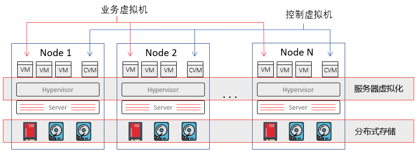 问题驱动了技术的进步,伴随着新技术的诞生。在云时代背景下,服务器虚拟化成为了一种新的主流形态。服务器虚拟化在经过多年的高速发展后已经越来越成熟,被接受和应用的领域也越来越广泛。它有效降低了硬件采购成本,提高了资源利用率和可用性,同时大幅提升了运维效率,缓解了IT建设面临的诸多压力。但是,在虚拟化时代的计算集群与存储集群依然是分开的,整个集群“同时横向扩展”的功能还是无法得到解决。