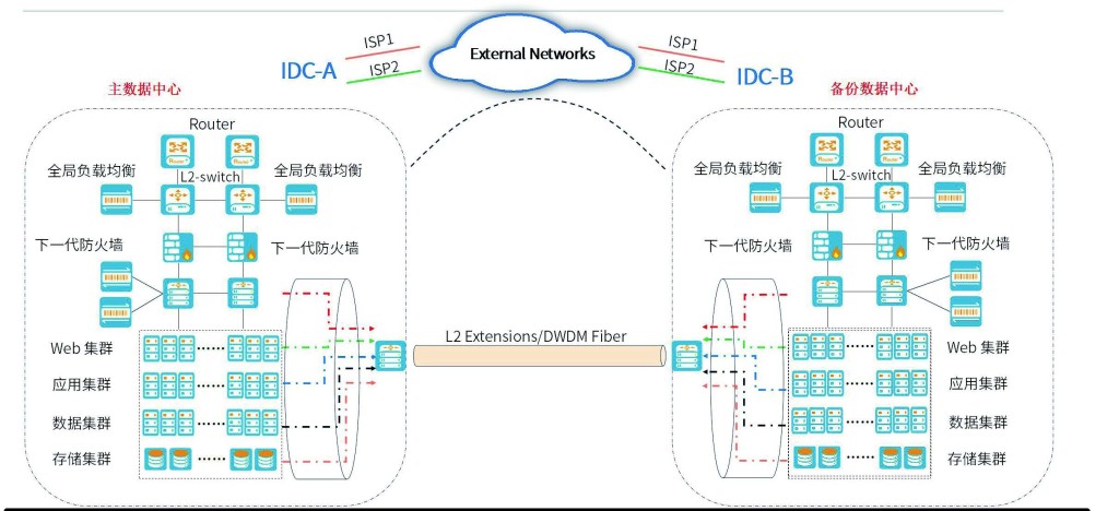 双活数据中心是金融企业数据中心的普遍架构模型,通过双活数据中心网络架构,可以大大提升数据中